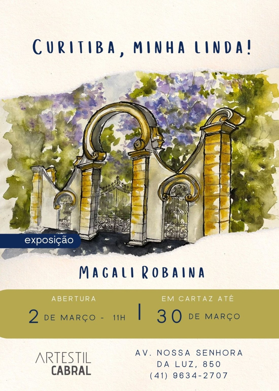 ‘convite’Publicado fevereiro 23, 2024 em 1142 × 1600 em Magali Robaina expõe paisagens curitibanas na Artestil Cabral ‹ Return to post Deixe um comentário Cancelar resposta Δ