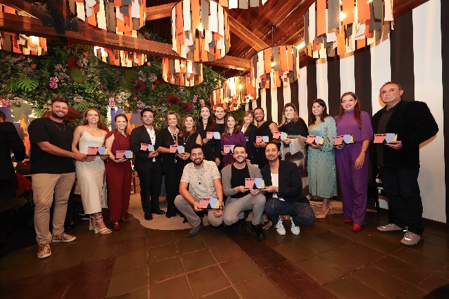Os ganhadores da Premiação da CASACOR Paraná 2024 posam com a diretora da mostra, Marina Nessi. Foto: Marcelus Modesto
