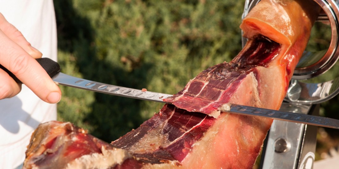 Degustação de Jamón fatiado durante todo o jantar