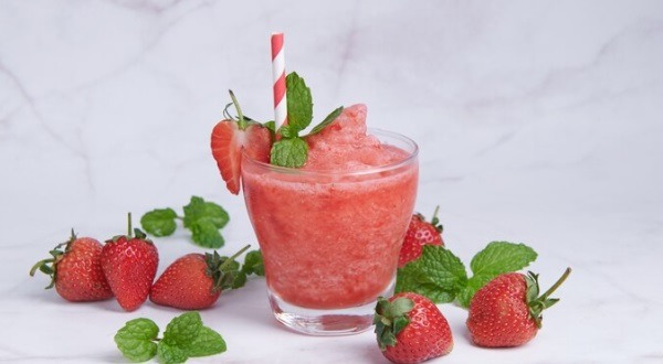 Modo de preparo – Extraia o suco do limão e coloque no liquidificador ou mixer. Adicione os morangos, a hortelã, a colher de mel e um terço da lata de água com gás (ou tônica). Bata até ficar homogêneo, transfira para um copo. Complete com a água com gás ou tônica para finalizar.