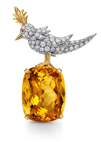 Broche em Ouro Amarelo e Platina com Citrino, Diamantes e Safira Rosa