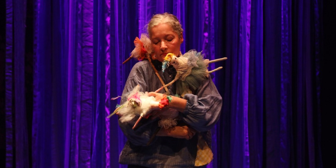 ‘Pedacinho de Tudo’ é uma obra autoral que nasceu das memórias de infância de Cristine, uma pesquisadora apaixonada pelo teatro de formas animadas. Neta de costureira, seu brinquedo favorito era o fardo de retalhos coloridos que sua avó cedia para que ela brincasse ao visitá-la.