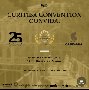 O Curitiba Convention (CCVB) promove no dia 18/03 (terça-feira), às 19h, na Ópera de Arame, o “Prêmio Embaixadores de Curitiba 2024”, edição histórica da principal honraria da entidade que homenageia os principais eventos realizados na cidade no último ano. Na mesma cerimônia, comemora seus 25 anos de atuação focada na geração de negócios para os associados por meio da captação, promoção e geração de eventos.
