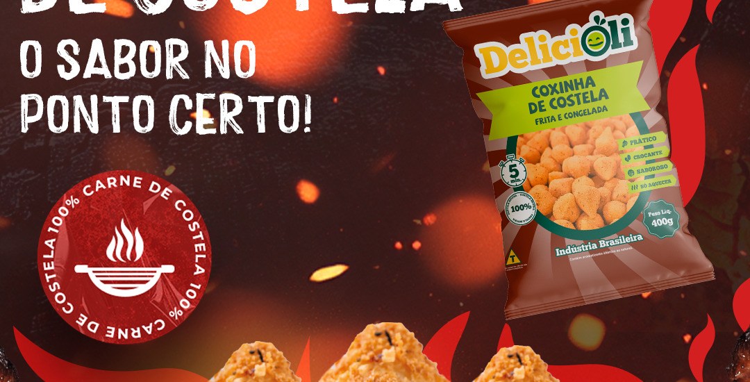 Após muitos pedidos do mercado, a Delicioli apresenta na ExpoApras 2025 sua mais nova estrela: a Coxinha de Costela. Com recheio suculento, massa leve e tempero no ponto certo, o produto foi pensado para unir o sabor que o público ama à praticidade que o lojista precisa.