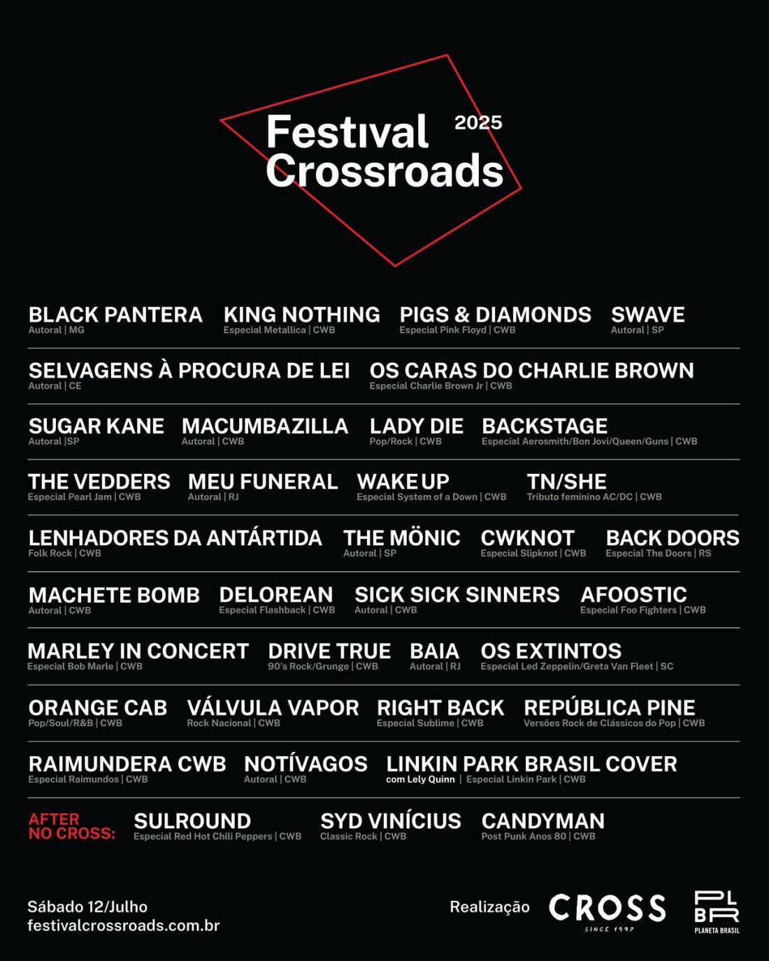 ‘Lineup_Cross’Publicado maio 14, 2025 em 1280 × 1600 em Maior festival de rock do Sul do Brasil anuncia line-up de peso e promete edição histórica no Dia Mundial do Rock 2025 ‹ Return to post Deixe um comentário Cancelar resposta Δ