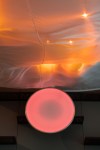 Inspirada na relação entre luz e atmosfera, Nimbo propõe uma paisagem em movimento. No centro da instalação, um círculo luminoso remete ao sol, irradiando luz que interage com um tecido iridescente e etéreo, criando efeitos visuais que simulam a materialidade do céu. À medida que o dia avança, a instalação se transforma: a luz reflete e se dissipa, as cores mudam, e a percepção do espaço se altera conforme o olhar e o movimento dos visitantes. Um convite à imersão no ritmo contínuo do tempo.