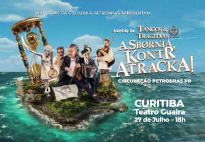 Após arrebanhar plateias por décadas com o sucesso cult Tangos e Tragédias, o universo cômico-musical da Sbørnia retorna em grande estilo ao palco do Teatro Guaíra, dia 27 de julho de 2025, às 18h, com participação especial do Coral curitibano Bom de Boca.
