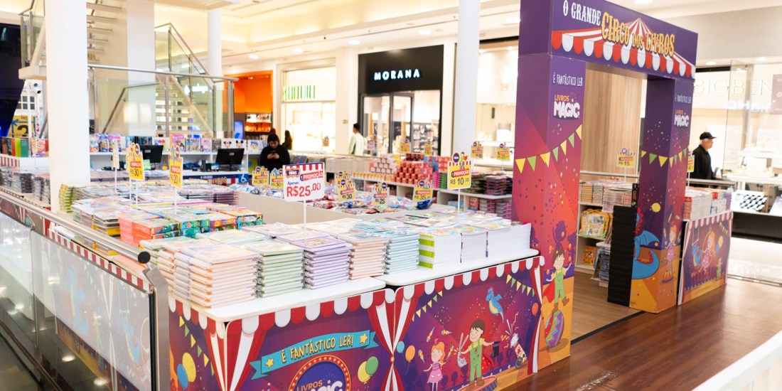 O Shopping Curitiba trouxe para a cidade a feira O Grande Circo dos Livros, da Magic Kids, editora com mais de 2 mil títulos voltados para crianças em diferentes idades e fases de desenvolvimento. O objetivo é transformar a vida dos pequenos leitores, incentivando a criatividade e diversão. Por isso, os livros têm preços acessíveis, a partir de R$ 10,00.