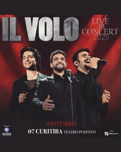 No dia 7, o público curitibano terá a oportunidade de prestigiar o trio italiano Il Volo, referência mundial da música pop lírica, em apresentação única. Composto pelos tenores Piero Barone, Ignazio Boschetto e pelo barítono Gianluca Ginoble, o grupo, formado em 2009, foi influenciado principalmente pelo estilo crossover do também italiano Andrea Bocelli.