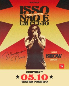 Os fãs de stand-up terão um mês repleto de atrações. No dia 5, o humorista Whindersson Nunes retorna ao palco do Teatro Positivo com o espetáculo “Isso Definitivamente Não é um Culto“, em que transforma episódios de sua própria vida em riso. Nathan Lopes chega no dia 12 com o stand-up “Nathan por aí”. No dia 19, Thiago Ventura apresenta “Só Agradece”. A experiência em sala de aula inspirou a criação do stand-up “Vida de Professor”, do comediante Diogo Almeida, nos dias 22 e 23. O improviso da Cia Barbixas de Humor é atração no Teatro UP Experience (TUX) também nos dias 25 e 26, em sessões duplas com o show “Improvável”.
