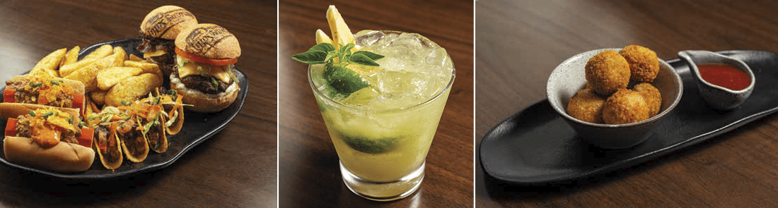 - SALLY’S COMBO: o cartão de visitas do Happy Hour da casa, com 1 Mini Mustang Special, 1 Mini Jack Daniel’s Burger, 4 mini tacos de carne chili com pasta de feijão (decorados com alface, tomate, cenoura e cebolinha), batatas rústicas fritas, 2 mini chili dogs (pão, maionese, salsicha, carne chili, cheddar e crocante de totopos).