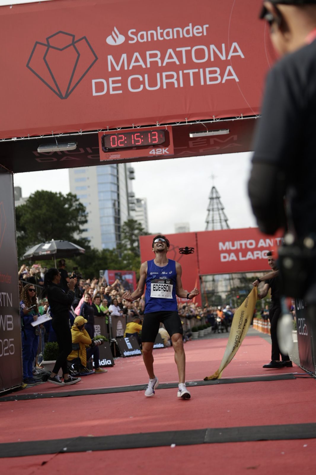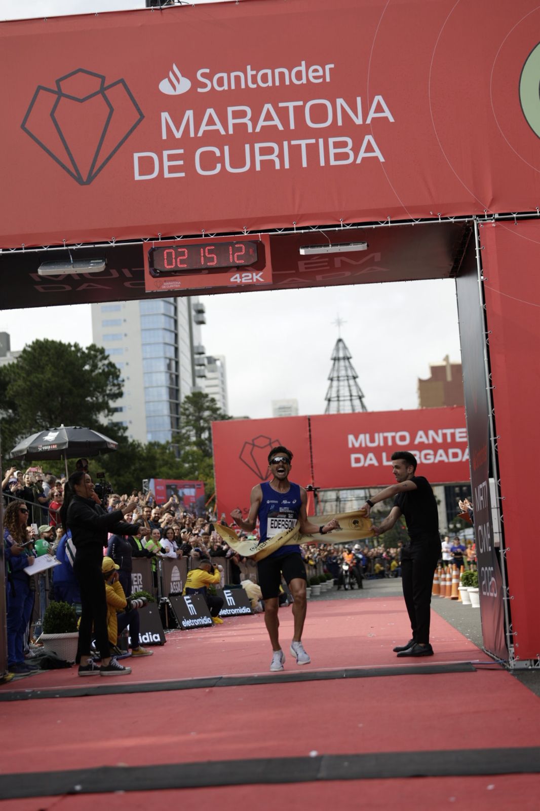“Desde 2023, quando corri aqui pra 2h19, eu nem pensava tanto em recorde, mas sabia que era possível. No ano passado já chegou perto, mas não veio. Este ano, de novo, não pensei em recorde, mas a prova levou ao recorde. Largou muito forte, o ritmo estava intenso desde o começo. Quando passou mais ou menos pelo km 30, eu pensei: ‘Quem ganhar a prova bate o recorde’. E aí falei comigo mesmo: ‘Vai ter que ser eu’.No final eu olhava muito pra trás, mas às vezes quando a gente olha, dependendo do ângulo, parece que tem alguém chegando. Eu tinha a impressão de que o queniano ainda estava ali, não tão perto, mas não tão longe. Só que na verdade já tinha aberto bastante. Quando eu cheguei aqui na reta final eu falei: ‘Agora já era. Agora é nossa’. E fomos embora.”, disse o campeão e novo recordista da Santander Maratona de Curitiba 2025, Ederson Vilela.