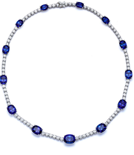 Colar em platina com tanzanitas e diamantes
