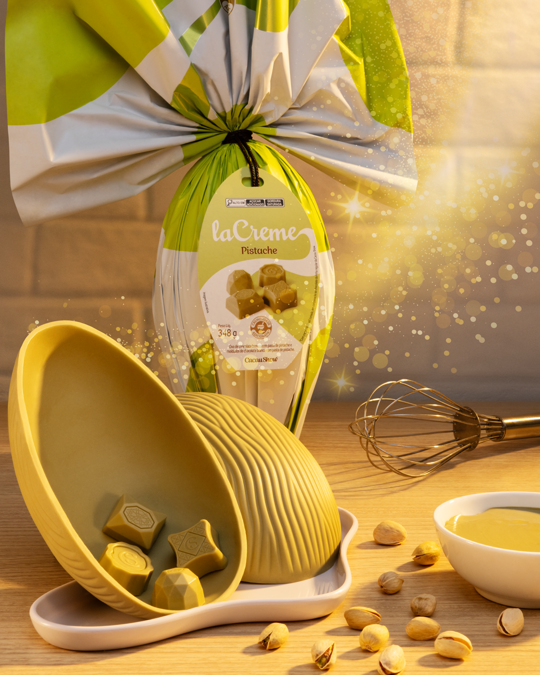 Para a Páscoa, a Cacau Show apresenta duas novidades visando atender aos consumidores que buscam o ingrediente em ocasiões especiais. O lançamento é o Ovo laCreme Pistache (348g), feito com chocolate laCreme — conhecido por sua cremosidade que derrete na boca — combinado a uma intensa pasta de pistache. Além dele, após o sucesso absoluto com edição limitada no ano passado, a marca apresenta o Ovo Dreams Dubai Pistache, desta vez com distribuição nacional. O produto traz cascas externas de chocolate ao leite, um delicioso recheio de creme de pistache, e massa kataifi – uma massa crocante muito utilizada nos doces árabes, que adiciona uma textura surpreendente à experiência, e é coberto por uma camada de chocolate branco.