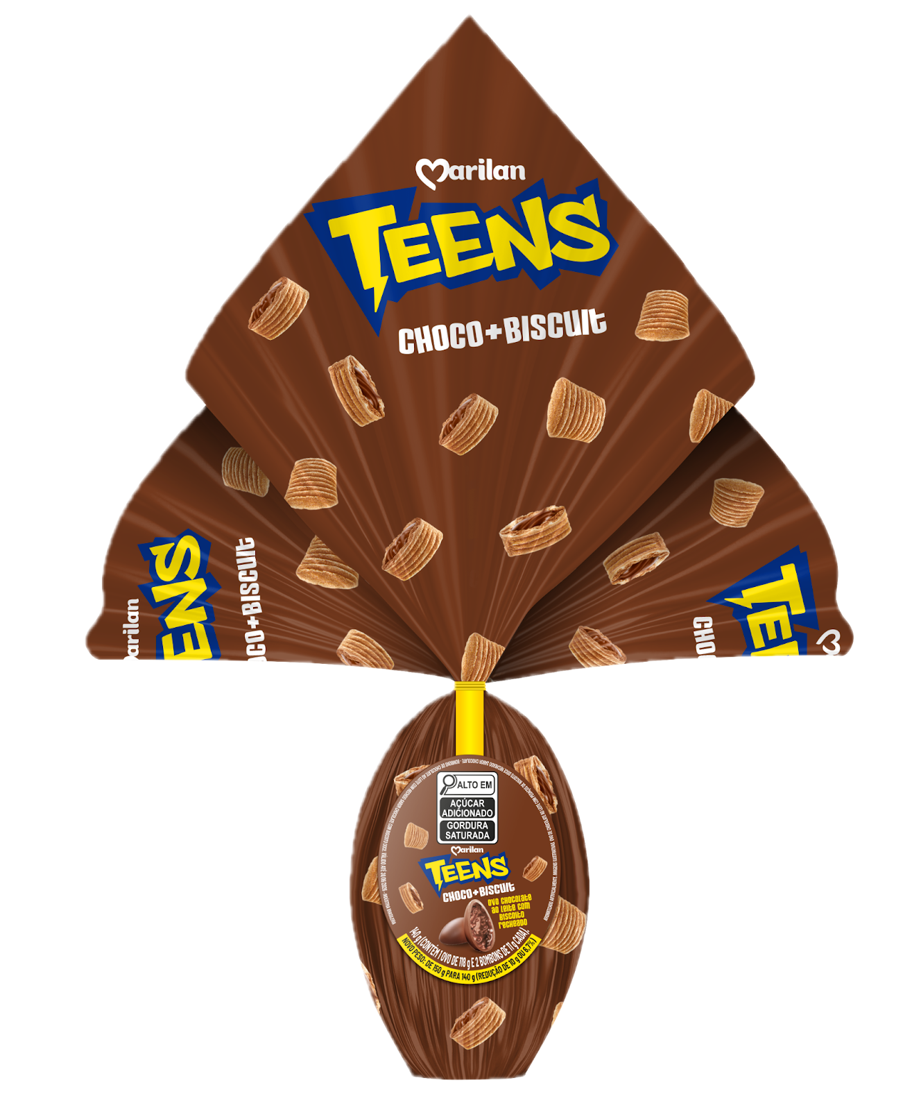 Entre os destaques estão o ovo Marilan Choco+Biscuit Maizena (140g), ovo de chocolate ao leite com pedaços de biscoito doce, que combina a cremosidade do chocolate com a crocância do tradicional biscoito Maizena Marilan, e o ovo Teens Choco+Biscuit (140g), ovo de chocolate ao leite com pedaços de snack Teens sabor chocolate, que une o chocolate à textura crocante do snack. As novidades levam para o formato sazonal combinações já conhecidas do consumidor, ampliando a presença das marcas na data.