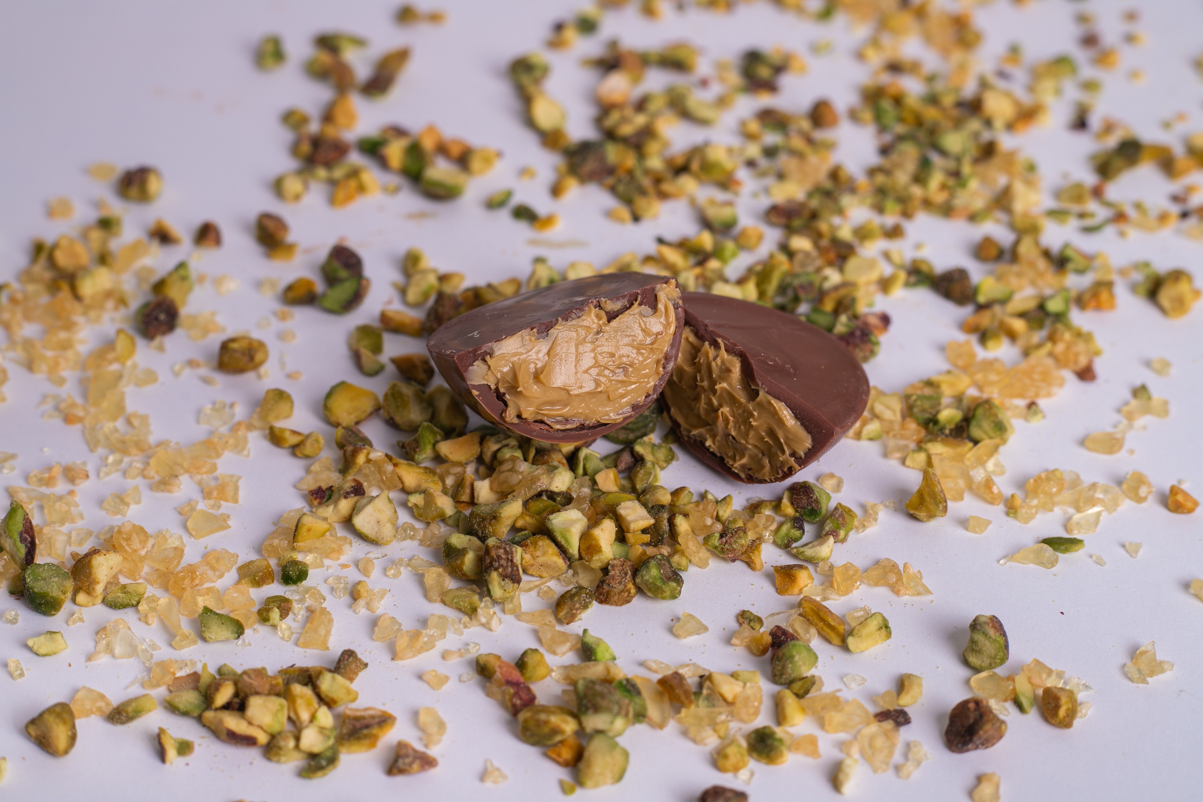 Ovo Nugali de Chocolate Ao Leite com Pistache e Tahine