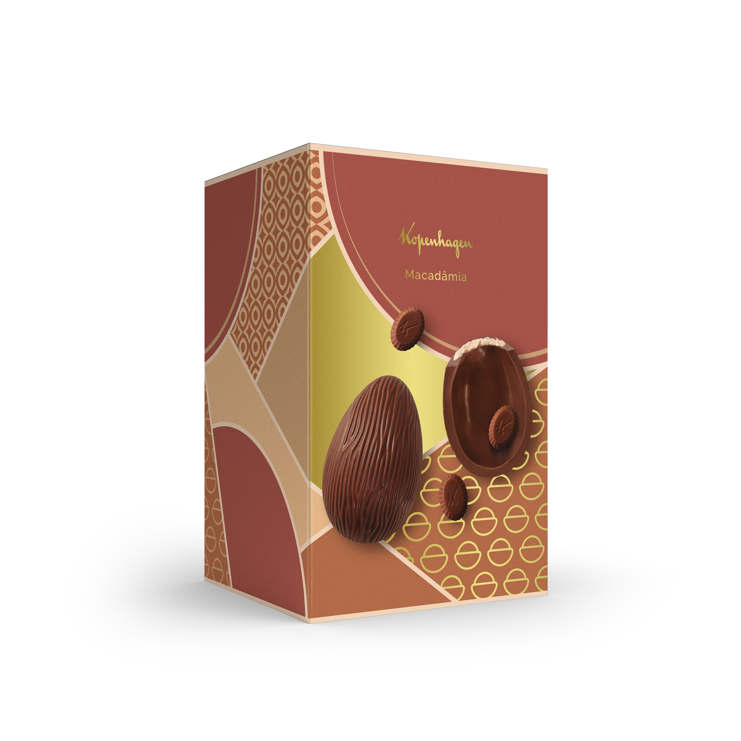 Ovo Macadâmia Caramelizada (310g): Ovo de chocolate ao leite com recheio de macadâmia caramelizada. Equilíbrio entre cremosidade e crocância. Acompanha três bombons de chocolate ao leite com macadâmia. Preço sugerido: A partir de R$149,90.