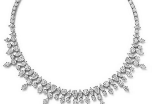 Colar em platina com diamante de mais de 6 quilates no total e detalhes em diamante.