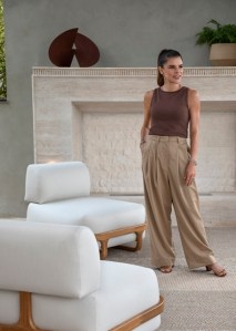 Cada peça foi escolhida para sustentar o acolhimento e equilíbrio. A chaise longue Kamari sugere contemplação e descanso. Os bancos Lucero, Manihi e Porter reforçam a versatilidade, enquanto o sofá Moh funciona como convite à permanência. Por fim, o biombo Tangalle acrescenta camadas de introspecção, evocando a ideia de que o verdadeiro luxo é poder se recolher.