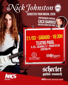 Neste sábado (21), o guitarrista canadense Nick Johnston, atualmente no Mastodon, chega a Curitiba para um workshow no Teatro Paiol, em uma apresentação única e intimista que promete uma visão rara de seu processo artístico. Uma parceria entre a Escola de Música 180BPM e a loja de música Playtime CWB, a apresentação ainda contará com a participação especial do guitarrista Cacá Barros.