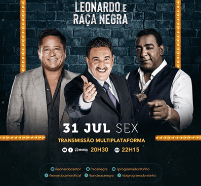 Em um show musical bastante descontraído conduzido por Ratinho, com humor, muita história e boa prosa, Leonardo e o grupo Raça Negra mostram a playlist selecionada de grandes sucessos como: "Pensa em Mim", "Entre Tapas e Beijos", "Cheia de Manias, "Cigana"; entre outras canções que marcam as carreiras dos artistas. "Live é coisa de intimidade e essa é especial porque vou estar em casa, no SBT, e muito mais a vontade com meus amigos Leonardo e Luiz Carlos ( Raça Negra)", afirma Ratinho, que também vai interagir com o público durante a transmissão e promete muitas surpresas."Que saudades dos amigos do SBT, do Ratinho e Luiz Carlos do Raça Negra. Mas na live vou matar essa saudade e cantar muito! Ahh...vou contar umas histórias...se preparem! Ahh muleke, rsrsrs!", diz Leonardo na expectativa da live. E Luiz Carlos também compartilha sua felicidade em estar num momento diferente com seus amigos:"Estou muito feliz e honrado de participar da Live do Ratinho, ao lado dos meus grandes amigos Leonardo e Ratinho, que fazem parte da minha vida pessoal e musical. Tenho certeza que será um grande momento de muita diversão e, principalmente, um momento de levar alegria para o nosso público! Esperamos todos vocês no dia 31 de julho, na rádio Massa FM, a partir das 20h30 e também a partir das 22h15, no SBT".