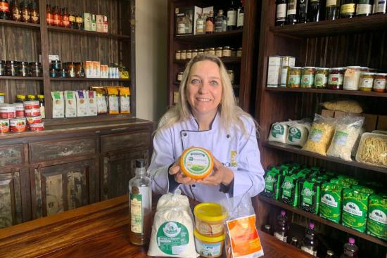 Com um restaurante à beira da rodovia, a empresária Rosane Radecki disponibiliza uma prateleira com produtos com IG (Crédito - Ronilda Chaves)